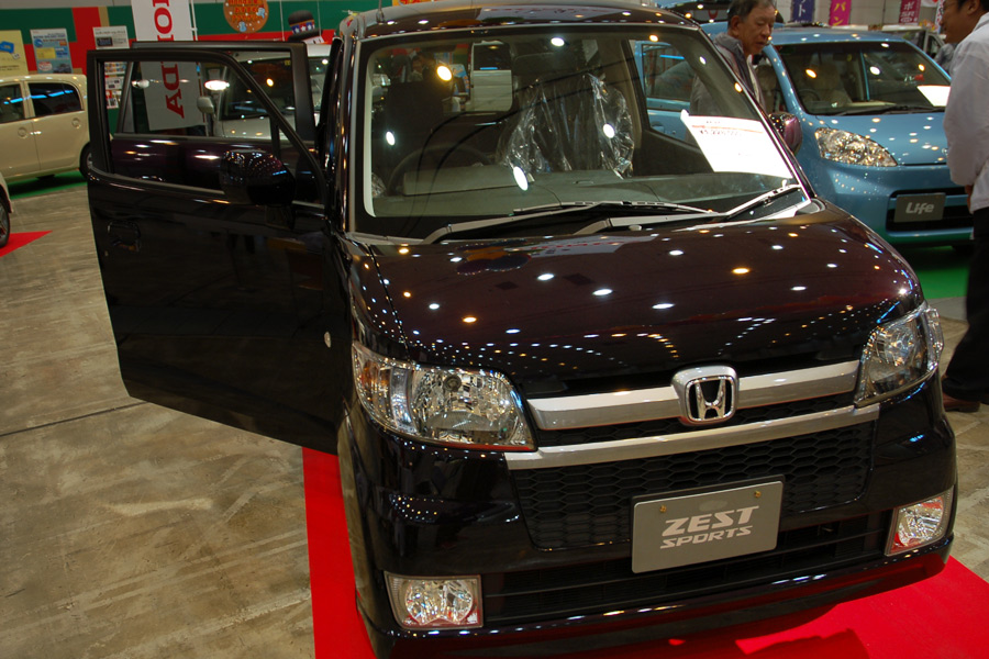 ▲続いて向かったブースはホンダさん。ゼスト・スポーツをオススメしていただきました。軽自動車最高クラスの衝突性能6スターを獲得した安全性に加え、スポーツはアルミホイールなど装備がすばらしくイケてます