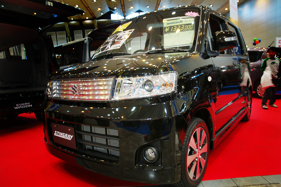 ▲スズキさんのブースではワゴンR スティングレーを大プッシュ。ブラックが基調の内外装などハードな魅力だけではなく、フルフラットにもなるシートアレンジや広い室内など、使い勝手も考えられた快適空間を兼ね備えています。