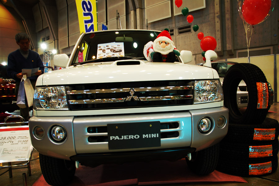 ▲次は三菱さんです。三菱さんからはパジェロ・ミニをピックアップ。高い悪路走破性能など、季節季節の足を支える安心感がロングセラーの魅力です。また、右に置いてあるスタッドレスタイヤを含んでの商談を実施されていました。