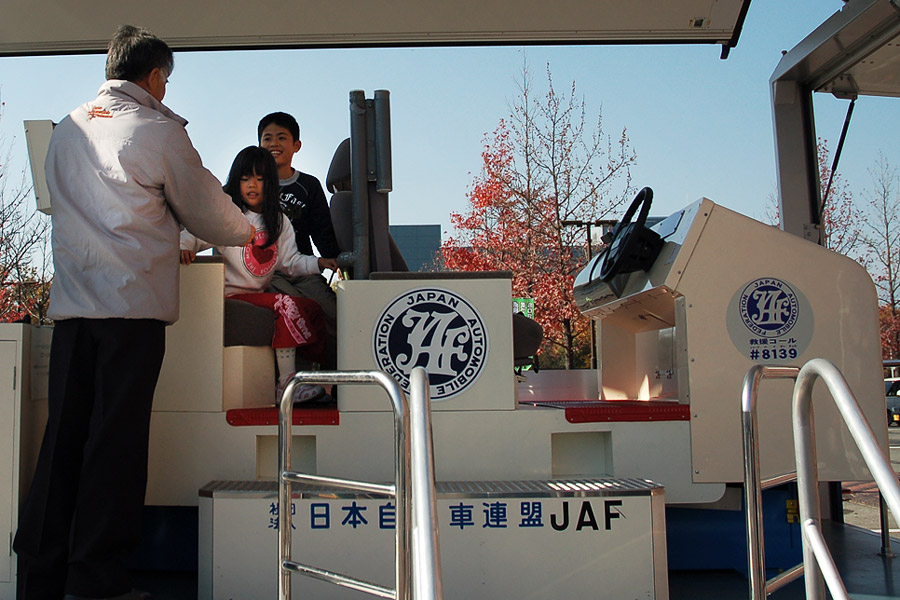 ▲同じくJAFさんによる「子供免許証コーナー」です。本物そっくりの自動車免許証を手に取って満足げな子供たちの笑顔がとても印象的でした。
