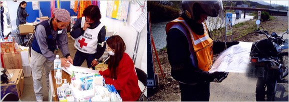 私は原付スクーターでの活動でした。渋滞が多く複雑な被災地の道路事情の中では軽快な二輪車は有効な移動手段だと思います。