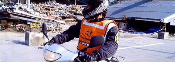 結成前に発生した阪神淡路大震災において、物資の輸送、情報の収集や伝達などにバイクが大きな役割をはたしました。
